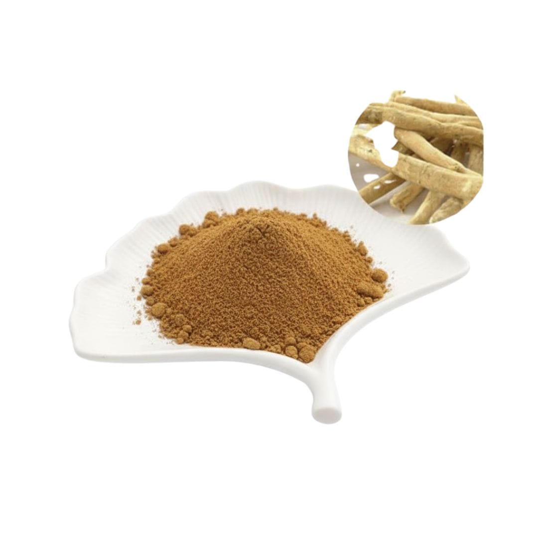 Extracts China's Ashwagandha Root Extract Powder, rooted in the rich legacy of traditional Ayurvedic medicine, is celebrated for its wide array of health benefits. We meticulously source our Ashwagandha roots solely from India, where the plant naturally flourishes, ensuring top-tier quality. At Extracts China, we place a strong emphasis on quality control throughout the manufacturing process. Our roots undergo careful harvesting and processing to preserve the plant's active compounds and essential nutrients. Through a series of stringent extraction techniques, we derive a potent and concentrated extract. This extract is then carefully dried and processed into a fine powder, guaranteeing peak potency and effectiveness in every serving.